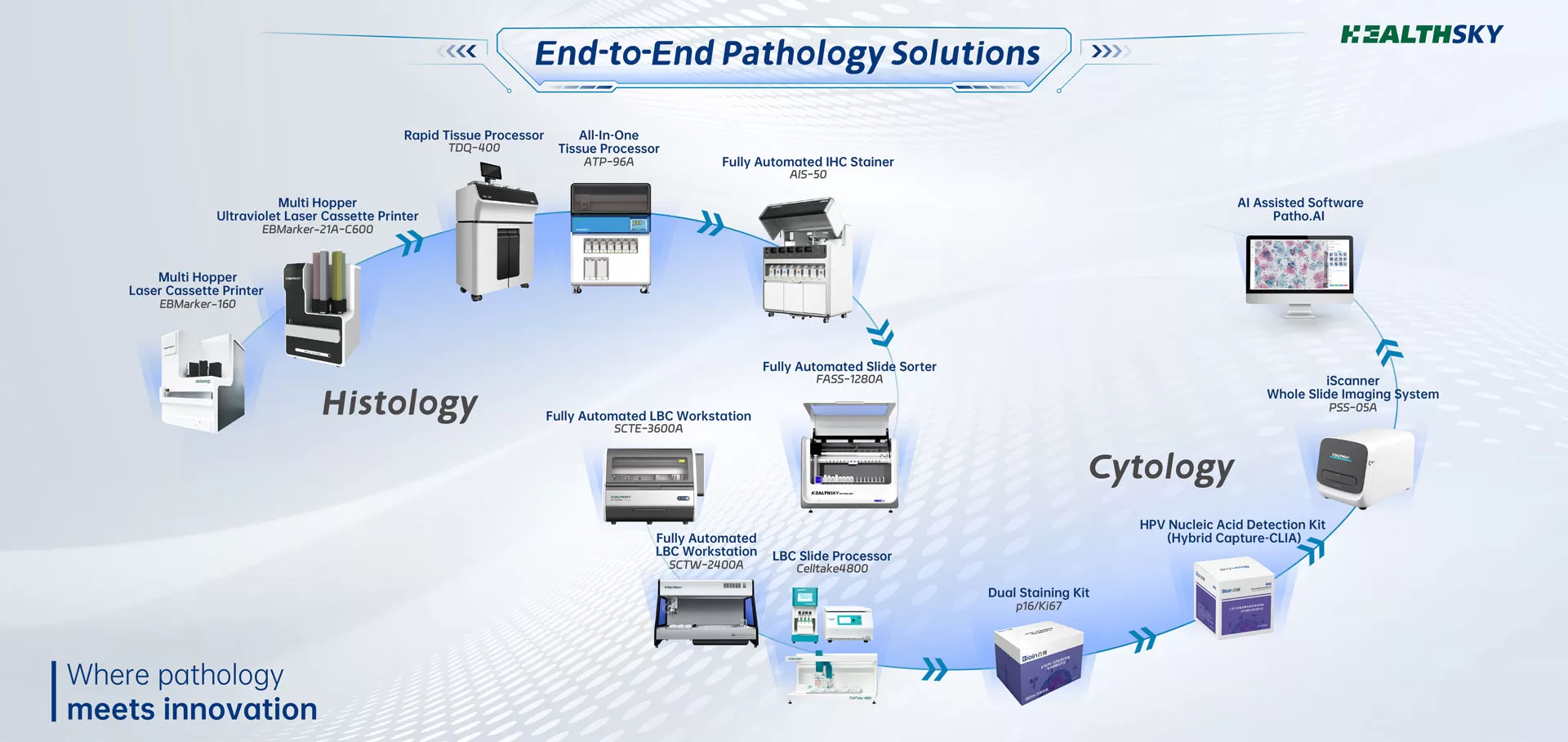 HealthSky has developed a range of products using advanced innovative technologies in their histology solutions to make the tissue processing more automated and standardized, optimizing precise diagnosis.